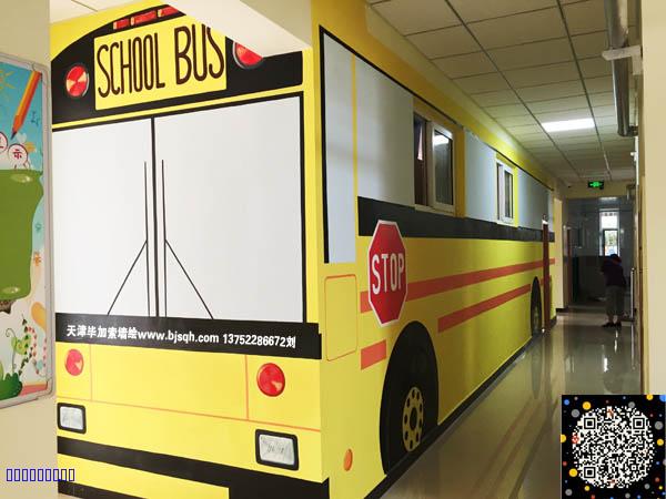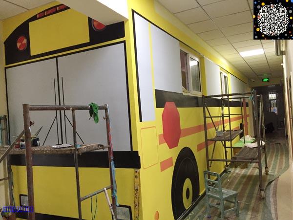 这次设计的zui大亮点是把其中的一个小班教室改造成一辆巨大的校车,教室的门和窗户也很好的融入了画面。