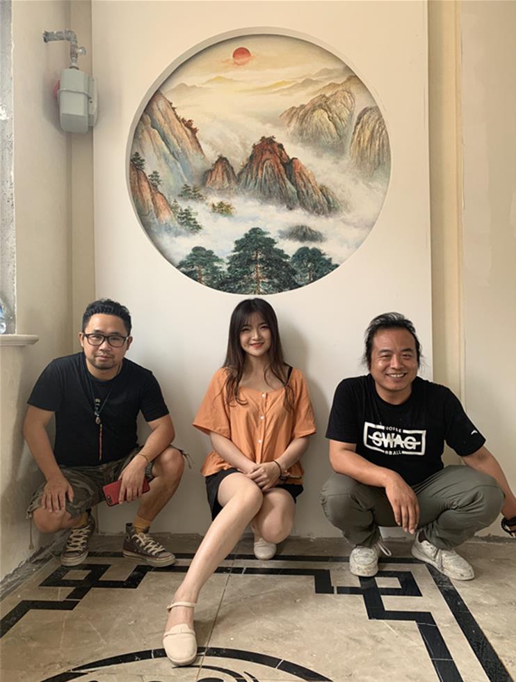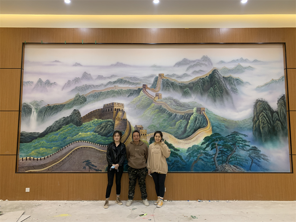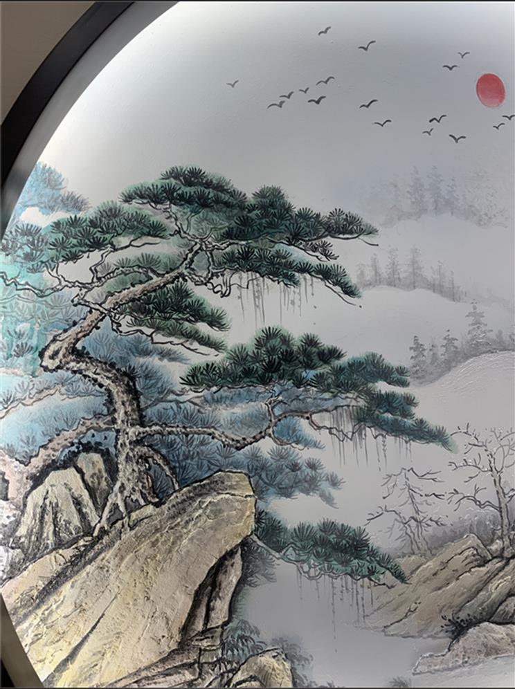 火星人创业园山水浮雕壁画彩绘